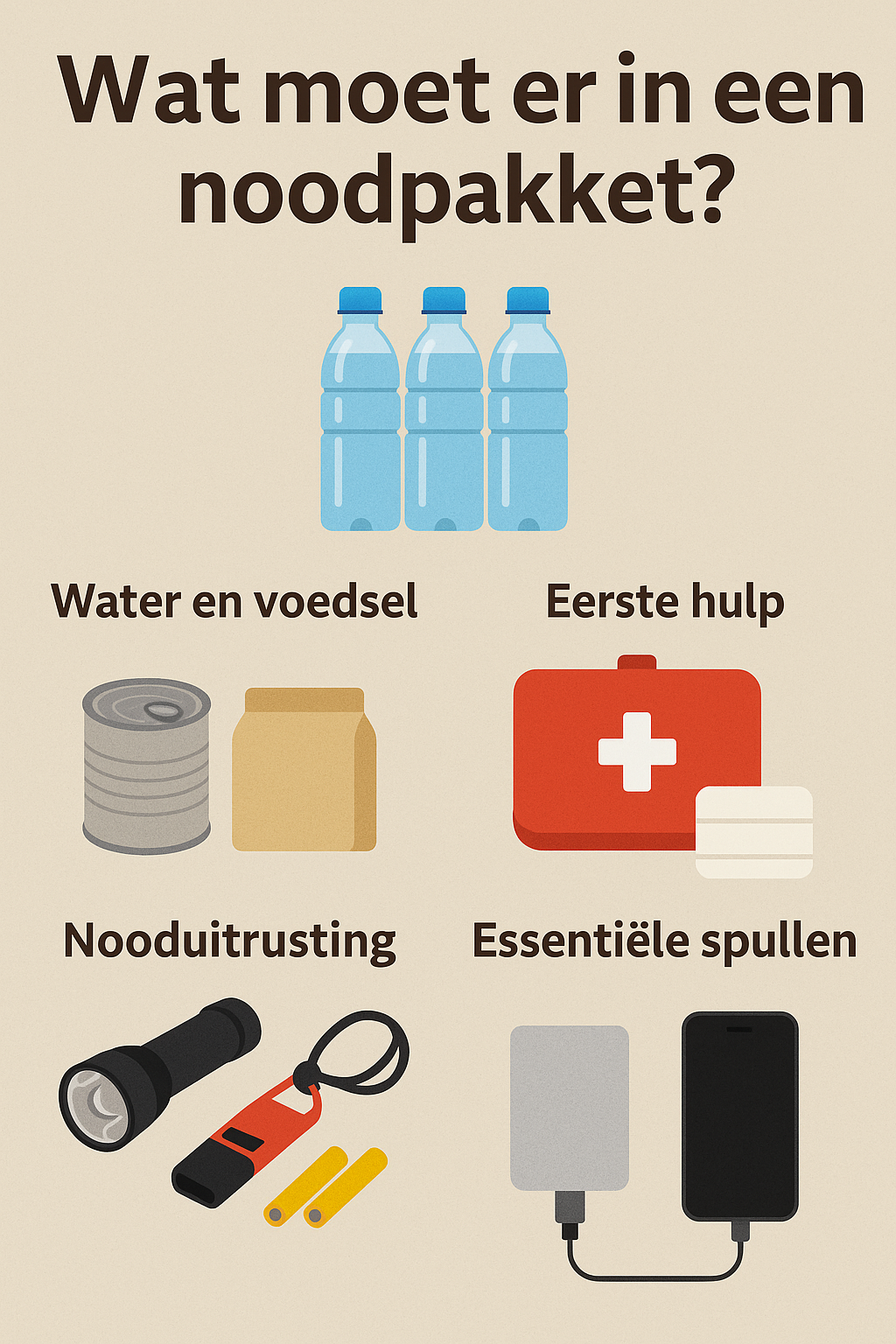 Een noodpakket is geen paniek-pakket, maar een rust- en zekerheidspakket. Door minimaal de basisvoorzieningen te waarborgen – water, voeding, communicatie, verlichting, hygiëne en gereedschap – en passend aan te vullen op jouw situatie, ben je beter voorbereid op wat er ook komt. Begin vandaag nog, en zorg dat je niet achter de feiten aan rent.